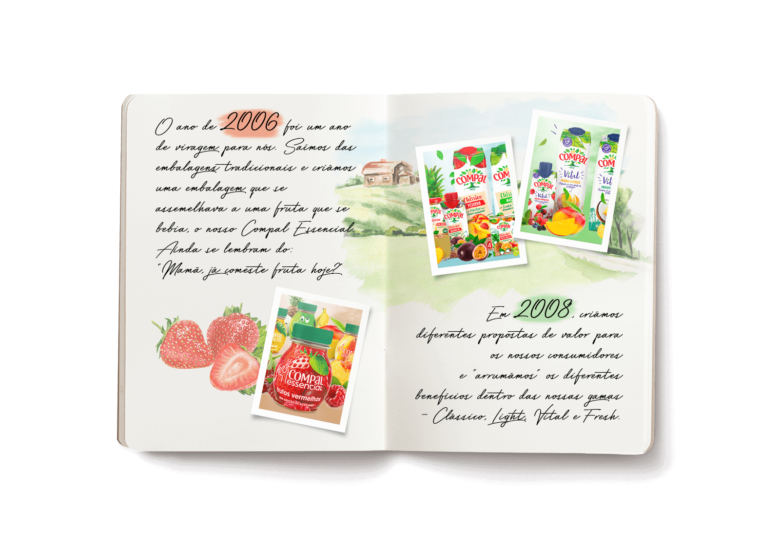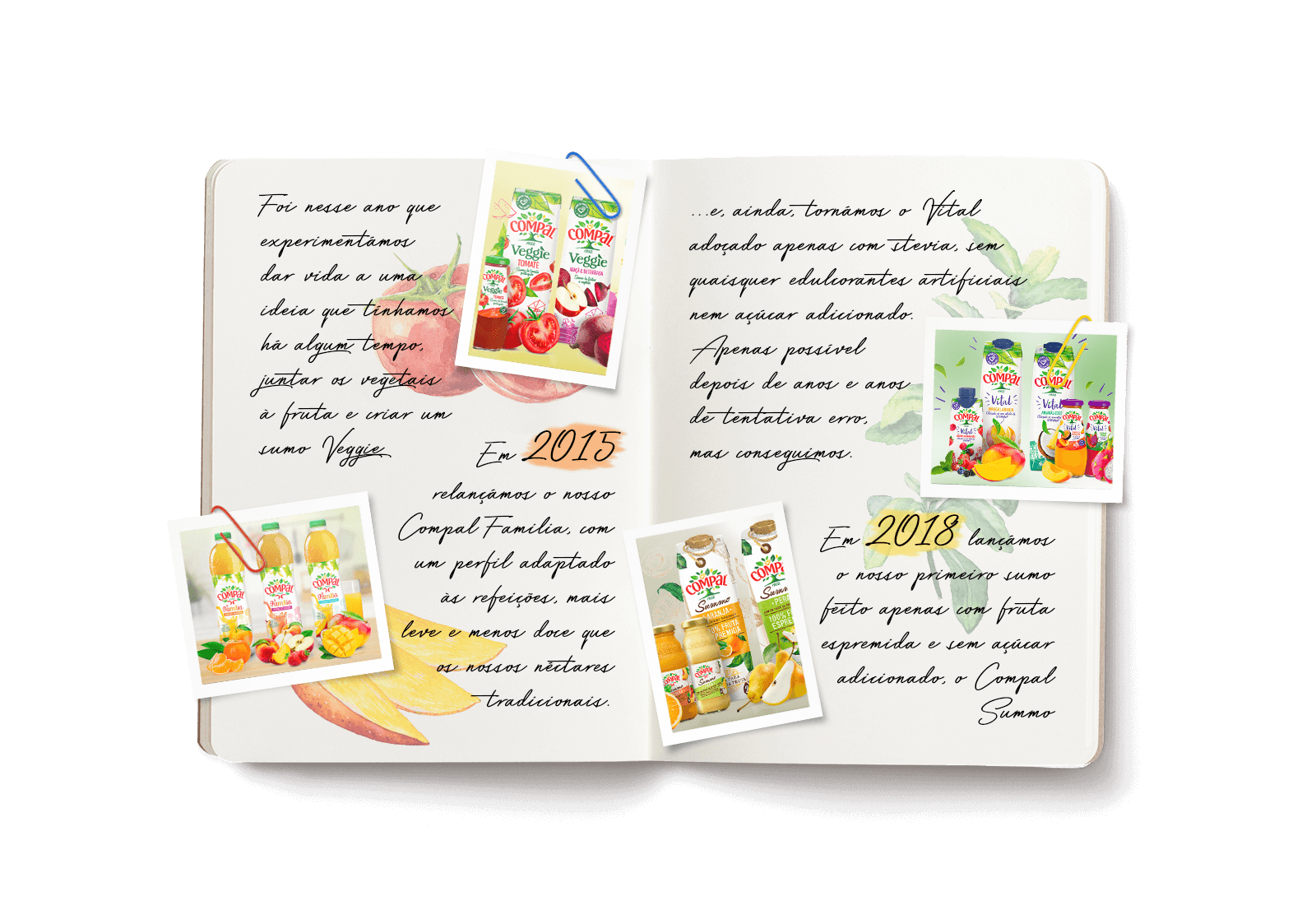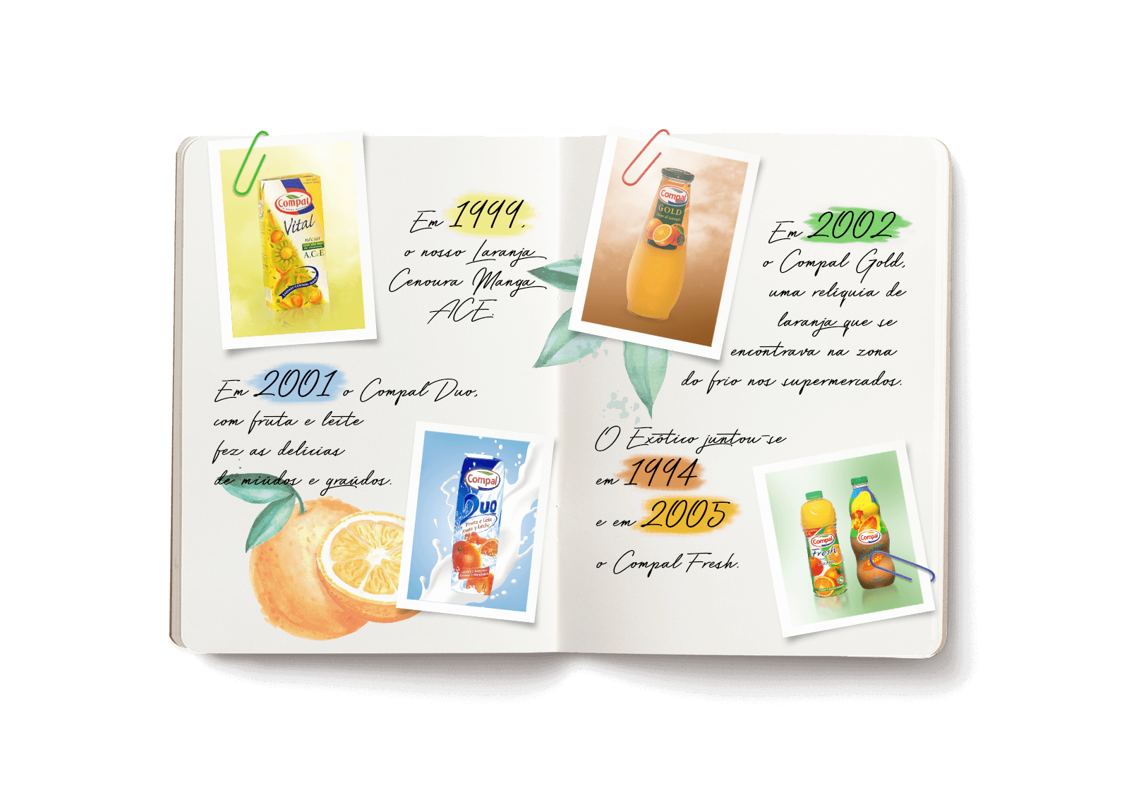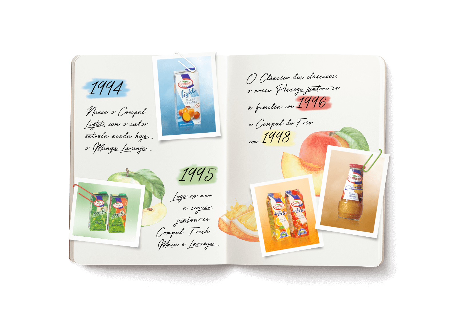 …só nos anos 60, nasceram os nossos primeiros néctares e foi quando Compal foi integrada no maior consórcio económico português da altura: a CUF (Companhia União Fabril) e nos foi possível construir a nossa fábrica em Almeirim, em 1964. Começámos a diversificar sabores e lançámos a Laranja e os míticos Alperce e Pera Rocha.